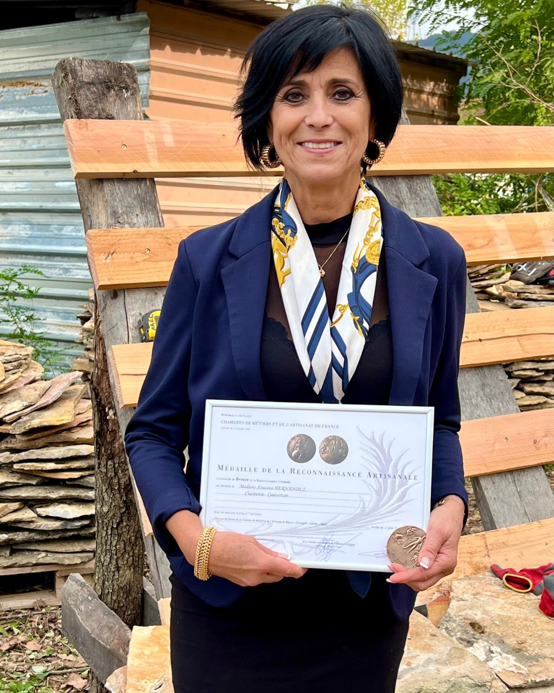 Pour Azucena Hernandez, cette médaille est l’aboutissement d’un investissement sans faille. Au-delà de son rôle à la tête de Moyne Tradition, entreprise experte en restauration de toitures anciennes, charpente bois et lauzes, elle Å“uvre depuis 2008 pour soutenir ses pairs.